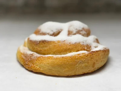 Pan redondo laminado y crujiente espolvoreado con azúcar antes de hornear.