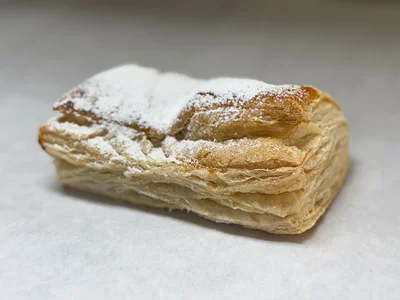 Elaborado con exquisita masa de hojaldre y jalea de guayaba, espolvoreado con azúcar glas.