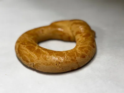 Pan crujiente, tostado en forma de aro, con ese dulzor ligero.