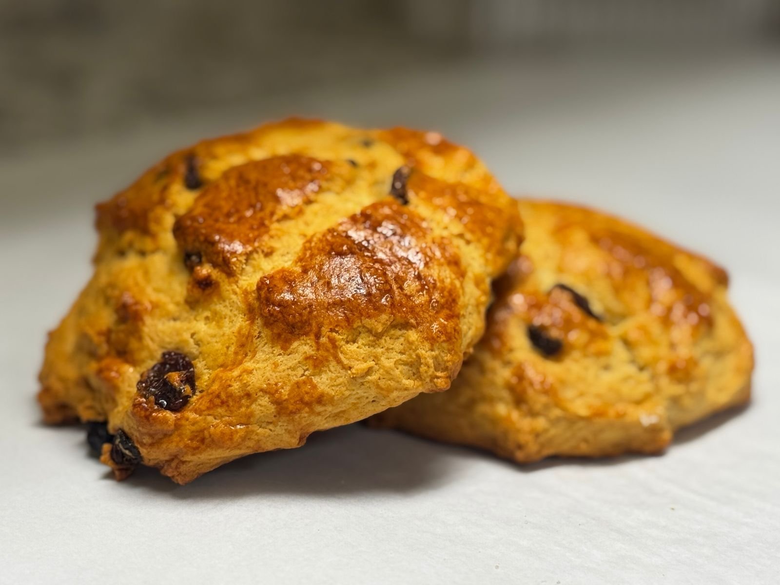 Pan elaborado con leche y glaseado brillante, contiene levadura, toques de vainilla y pasas.